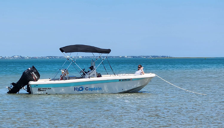 H2O Captain Eco-Tour Private Boat Excursions offers private boat tours of the Crystal Coast. You’ll be welcomed aboard a 21-foot open center console Ultra-Elite Series Carolina Skiff by Captain Mark and his first mate Lucky, the dog. The boat features cushioned seats, a dining table and a soft Bimini sun protector.