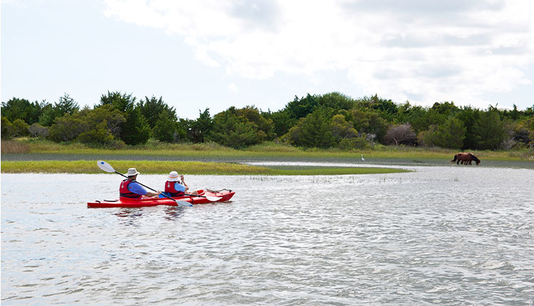 Depending on where you choose to paddle along your aquatic journey, you might even catch a glimpse of the exotic wild horses that have roamed these shores for generations, a sighting that many hope to experience along this beloved region. You’ll feel the tranquil sea breezes gently blowing across glassy waters and hear the soft lapping of the waves against your kayak, creating a sense of serenity that’s hard to find elsewhere.